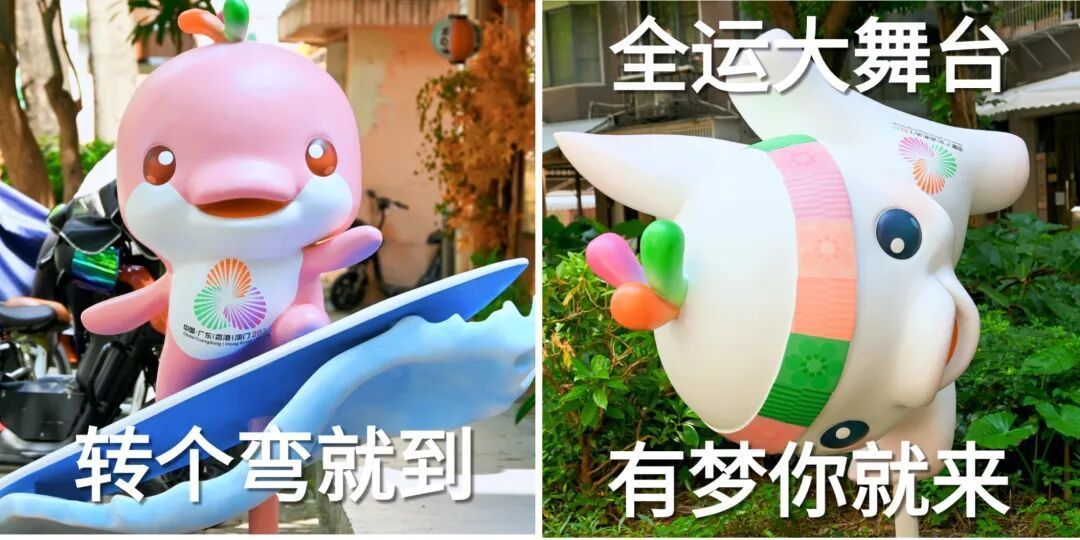 其实,小粉皮这么卖力都是为了符合官方设定。众所周知,“喜洋洋”“乐融融”的原型是中华白海豚。据十五运会和残持奥会会徽及吉样物设计团队负责人刘平云介绍,白海豚的表面有血管,当它运动的时候,表皮充血,就会呈现出粉色,所以会把一些力量型的动作交给“乐融融”。