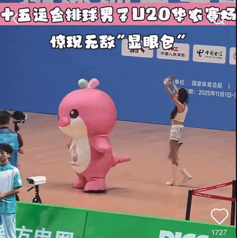 在十五运会跳水女子双人10米台预赛现场,“乐融融”依旧保持高能量,摇摆跳跃不停歇。这样敬业的表现让广大网友都直呼加工资。