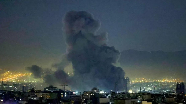 图为3月1日,导弹袭击德黑兰后,烟柱升腾